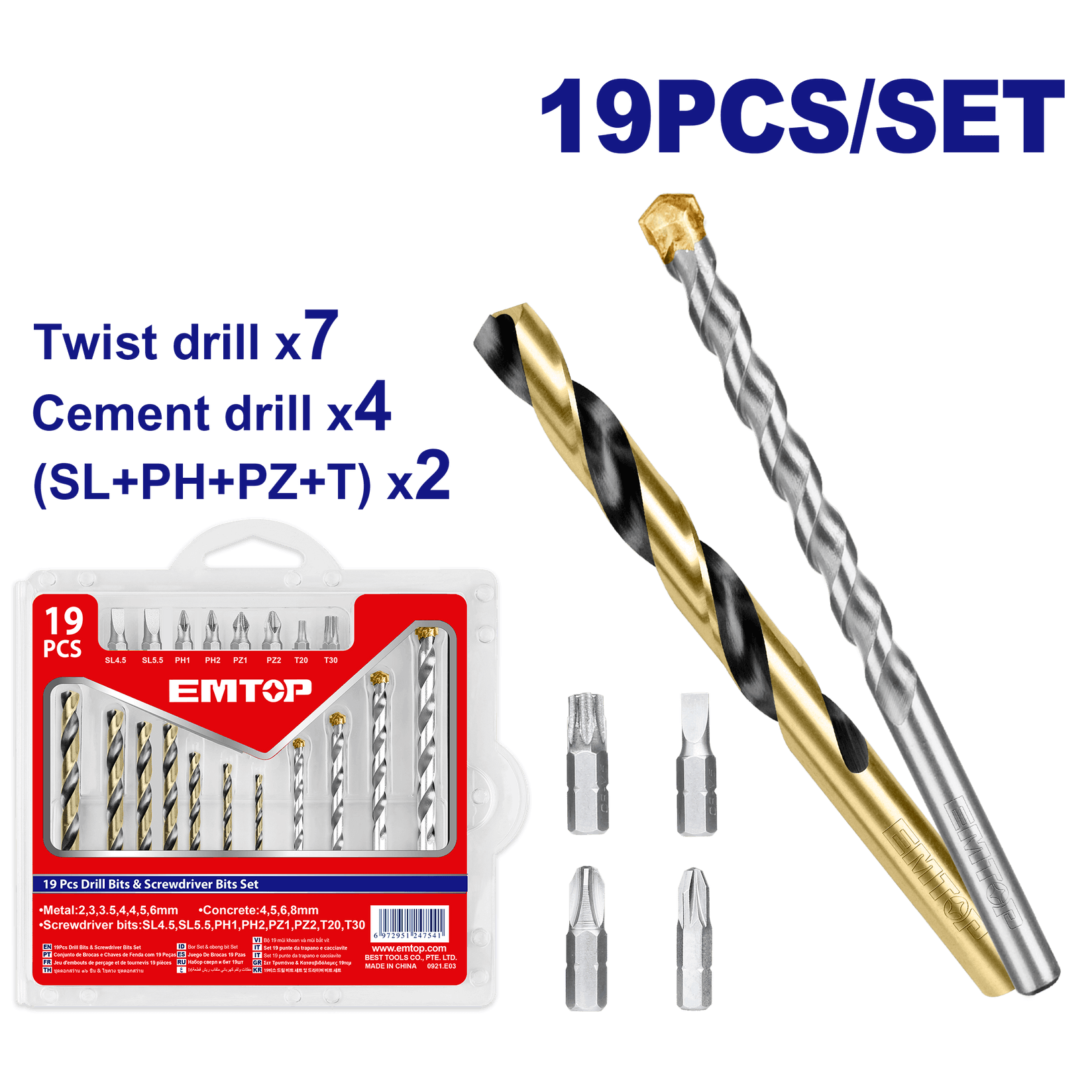 Set de 19 buc burghiuri si surubelnite EMTOP